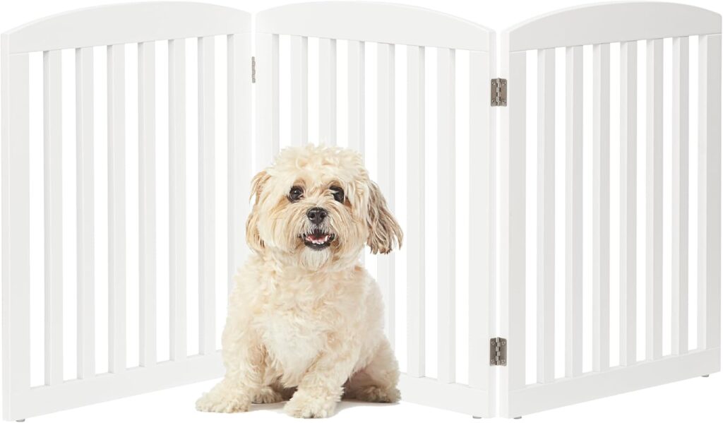 PAWLAND Wooden Freestanding Foldable Pet Gate for Dogs, 24 inch 3 Panels Step Over Fence, Dog Gate for The House, Doorway, Stairs, Extra Wide (White, 24" Height-3 Panels)
